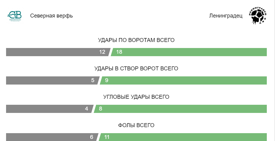 Статистика по матчу Северная верфь — Ленинградец
